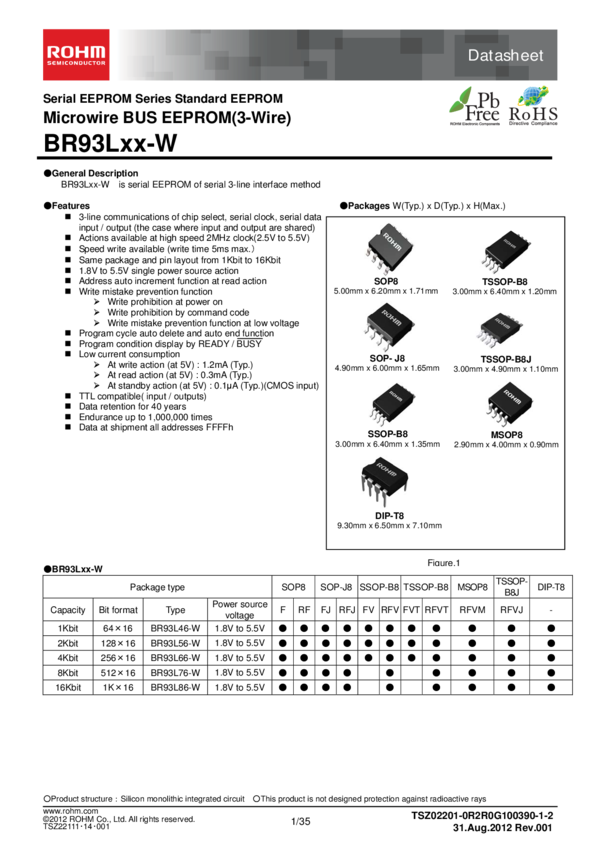 BR93L66FVT-WE2 EEPROM Serial-Microwire 4K-bit 256 x 16 2.5V/3.3V/5V 8-Pin TSSOP-B Embossed...