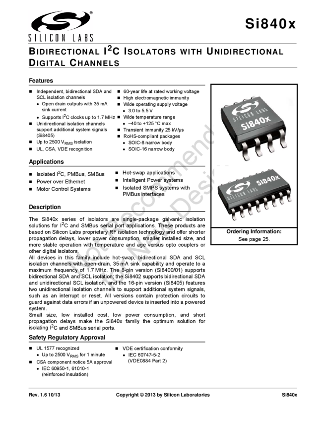 SI8400AB-B-ISR Bidirectional I2C Isolator 8-Pin SOIC N T/R