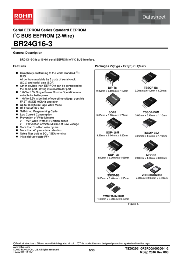 BR24G16FVM-3GTTR EEPROM Serial-I2C 16K-bit 2K x 8 1.8V/2.5V/3.3V/5V 8-Pin TSSOP-B T/R