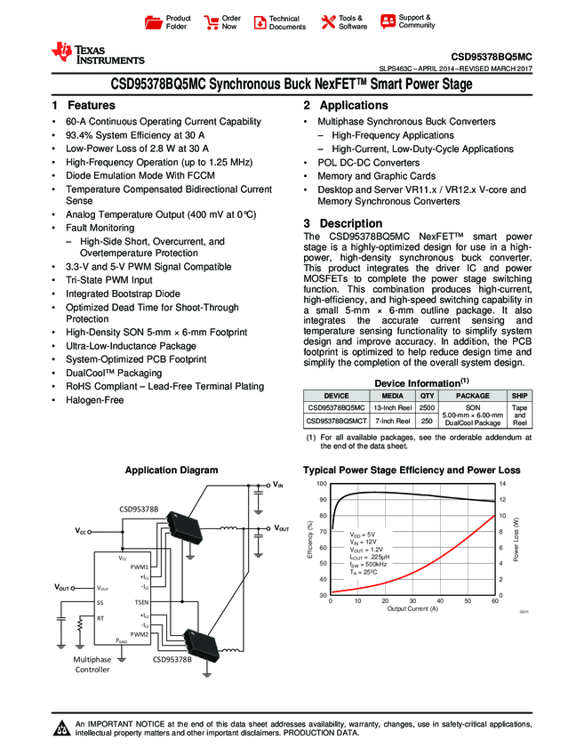 CSD95378BQ5MC Synchronous Buck NexFET Power Stage 12-Pin VSON-CLIP T/R