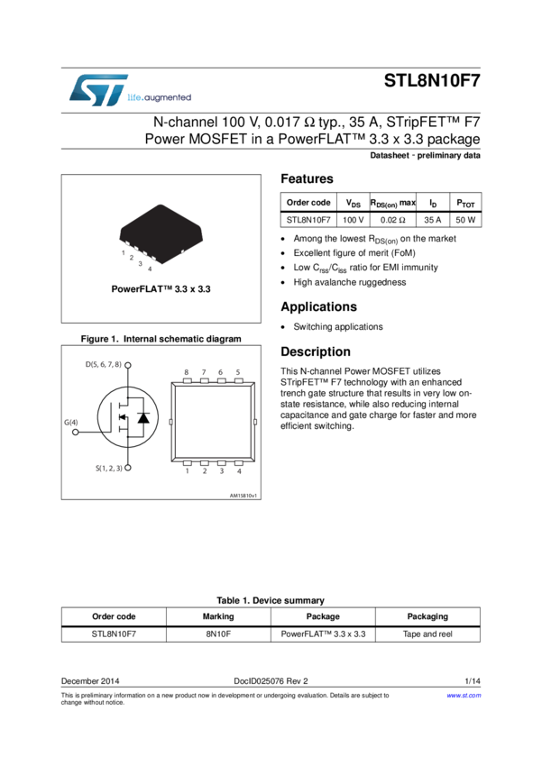 STL8N10F7 Trans MOSFET N-CH 100V 8A 8-Pin PowerFLAT T/R