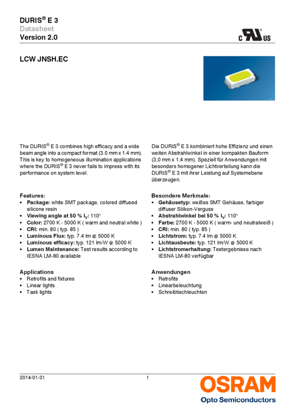 LCW JNSH.EC-BTCP-5L7N-L1M1 LED Uni-Color White 8.94lm 4000K Chip LED 2-Pin SMD T/R