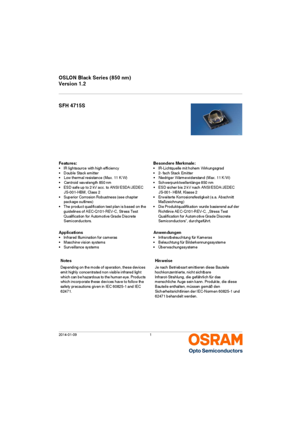 SFH 4715S-DADB LED IrLED 1030mW 860nm Chip LED 3-Pin SMD T/R
