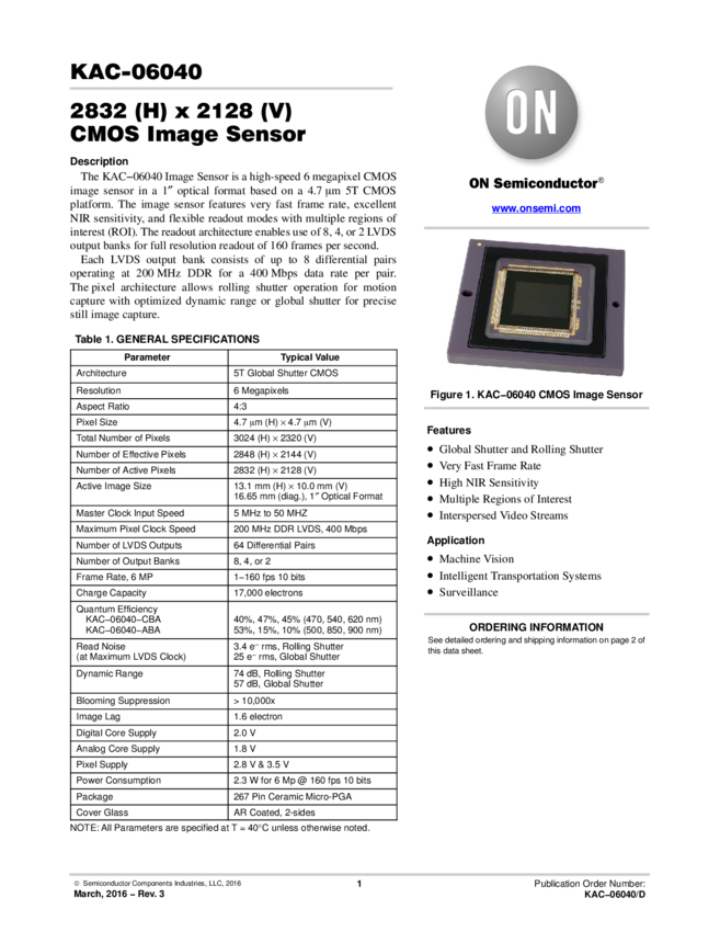 KAC-06040-CBA-JD-AA Image Sensor Color CMOS 2832x2128Pixels 267-Pin uPGA