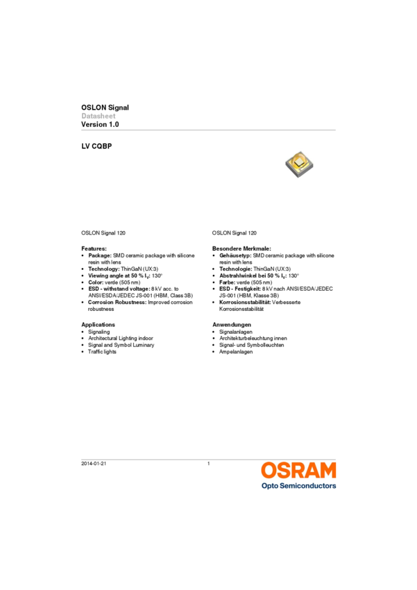 LV CQBP-KXKY-CD-1 LED Uni-Color Green 97lm 503nm Chip LED 3-Pin CSMD T/R