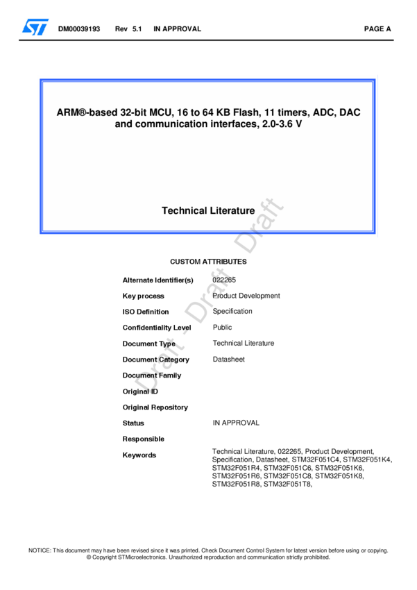 STM32F051C8U6TR, STM32F051K8T7, STM32F051C6U6, STM32F051R6T6TR