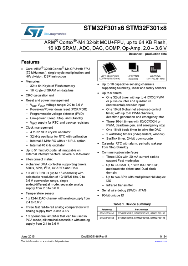 STM32F301C8Y6TR ARM-based 32-bit MCU 64KB Flash 2.5V/3.3V 49-Pin WLCSP T/R