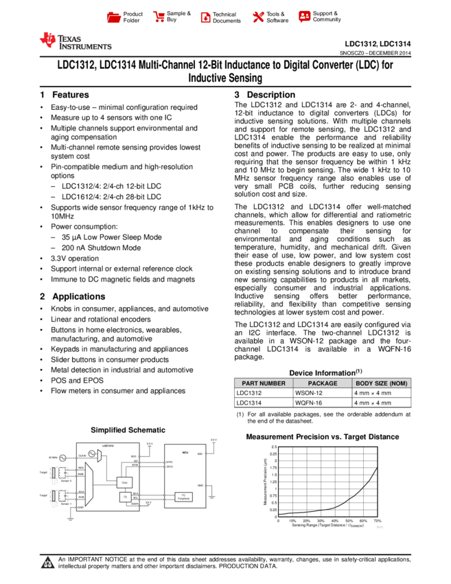 LDC1312DNTR Inductance to Digital Converter 12-Pin WSON T/R