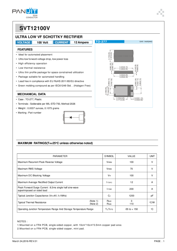 SVT12100V_R2_00001 Diode Schottky 100V 12A 3-Pin TO-277 Plastic T/R