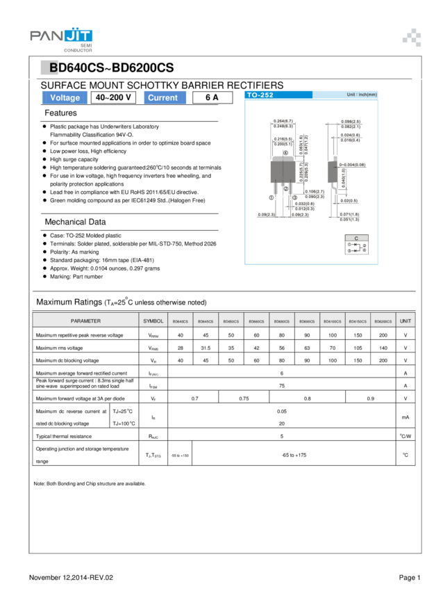 BD680CS_S2_00001 Diode Schottky 80V 6A 3-Pin TO-252 Plastic T/R
