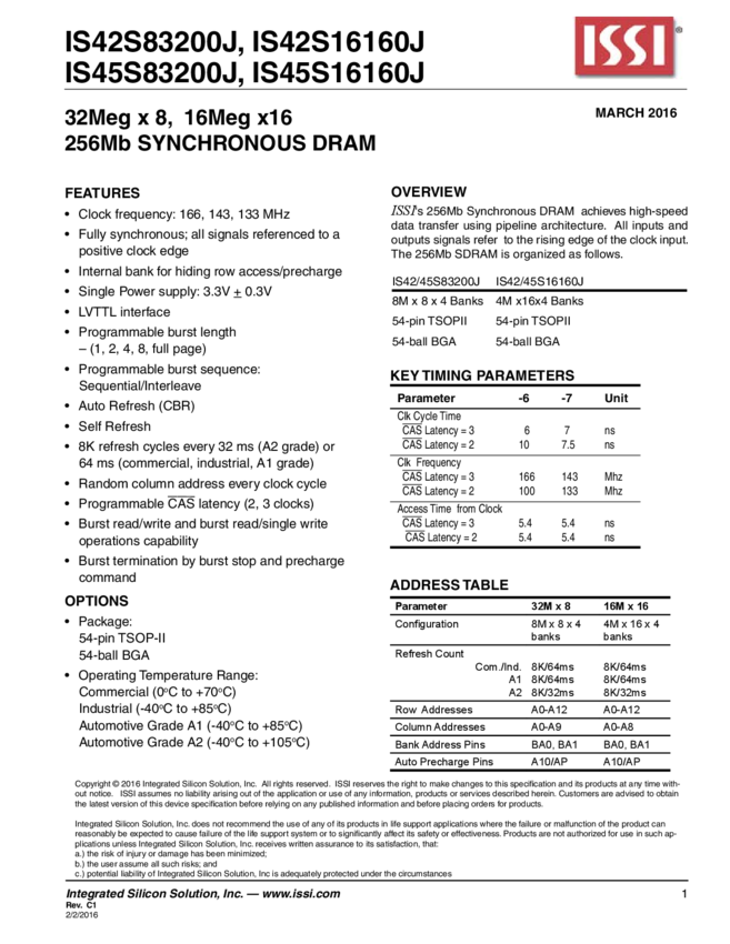 IS42S16160J-6BLI DRAM Chip SDRAM 256M-Bit 16M x 16 3.3V 54-Pin TFBGA