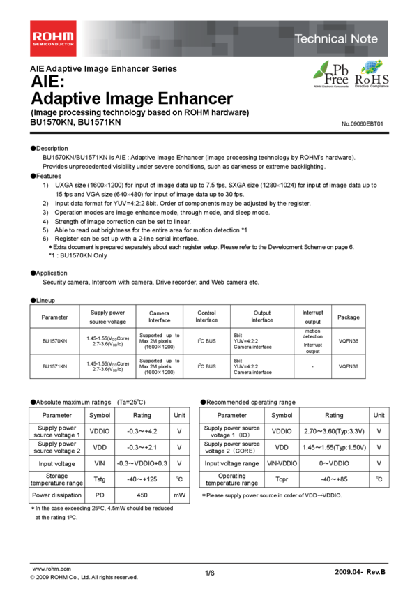 BU1570KN-E2 Adaptive Image Enhancer 36-Pin VQFN Embossed T/R