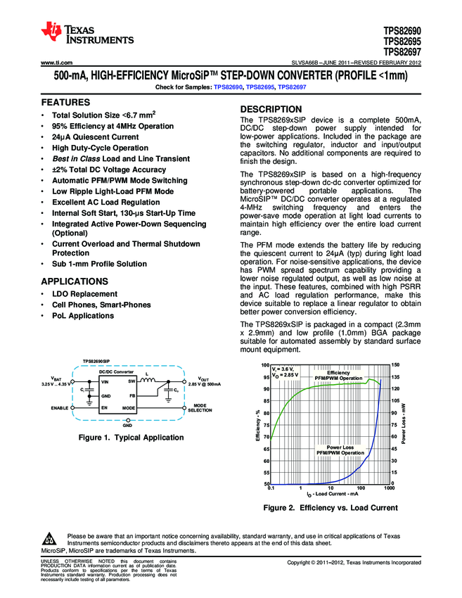 TPS82695SIPR Conv DC-DC Single Step Down 2.3V to 4.35V 8-Pin uSIP T/R