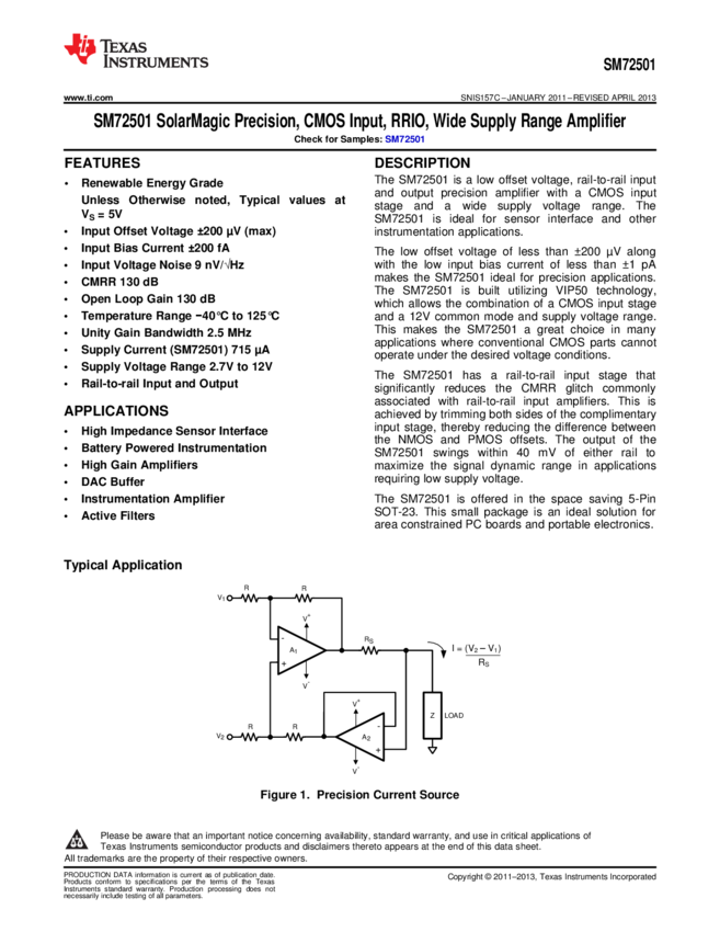 SM72501MFE/NOPB OP Amp Single GP R-R I/O 12V 5-Pin SOT-23 T/R