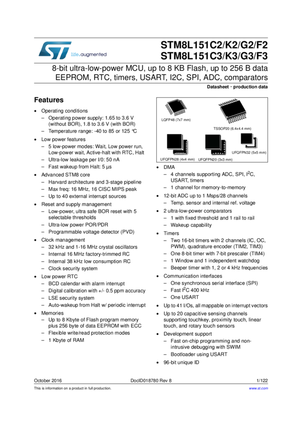 MCU 8-bit STM8L STM8 CISC 8KB Flash 2.5V/3.3V 20-Pin TSSOP T/R