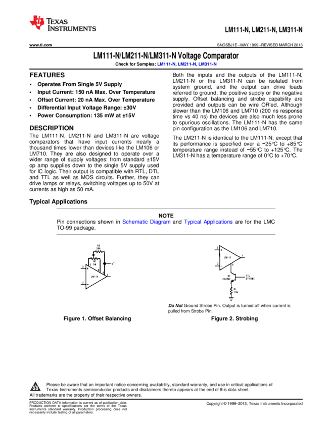 LM311M Comparator Single ±15V/30V 8-Pin SOIC N Rail