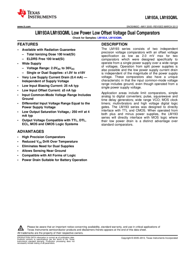 5962-9452602MGA, LM193H/883, LM193AH/883