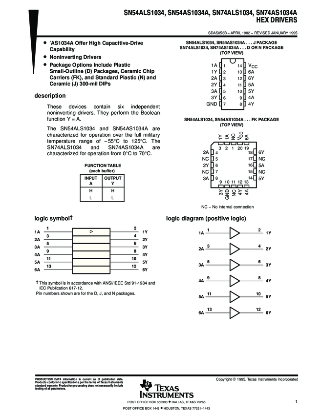 SN74ALS1034N Buffer 6-CH Non-Inverting Bipolar 14-Pin PDIP Tube