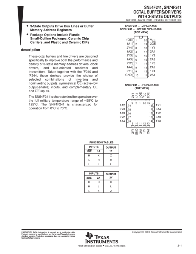 SN74F241N Buffer/Line Driver 8-CH Non-Inverting 3-ST Bipolar 20-Pin PDIP Tube