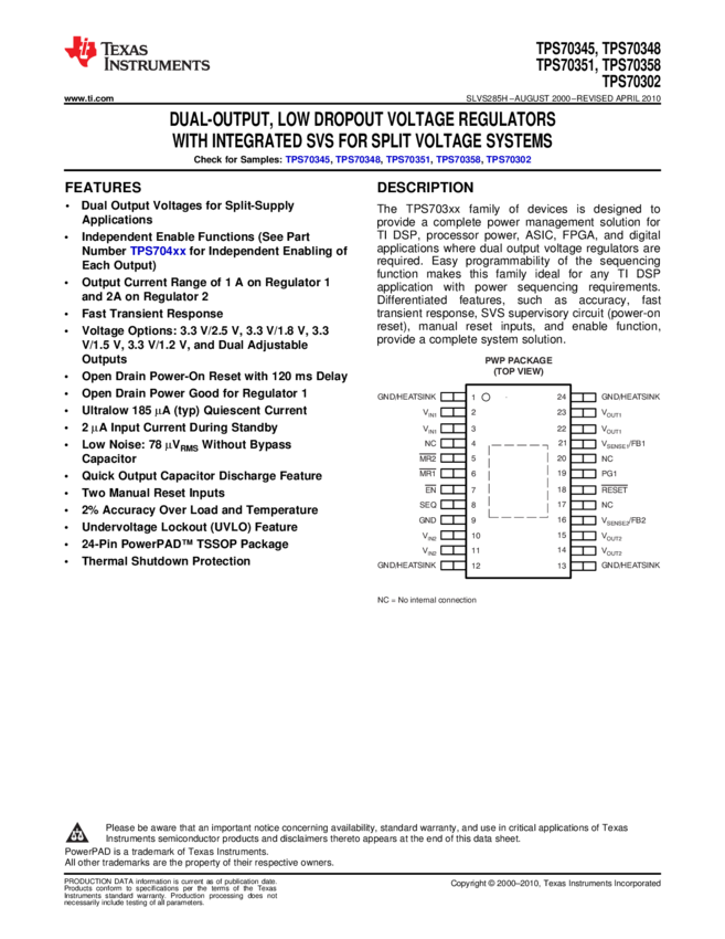 TPS70348PWPR, TPS70302PWPR, TPS70358PWPR