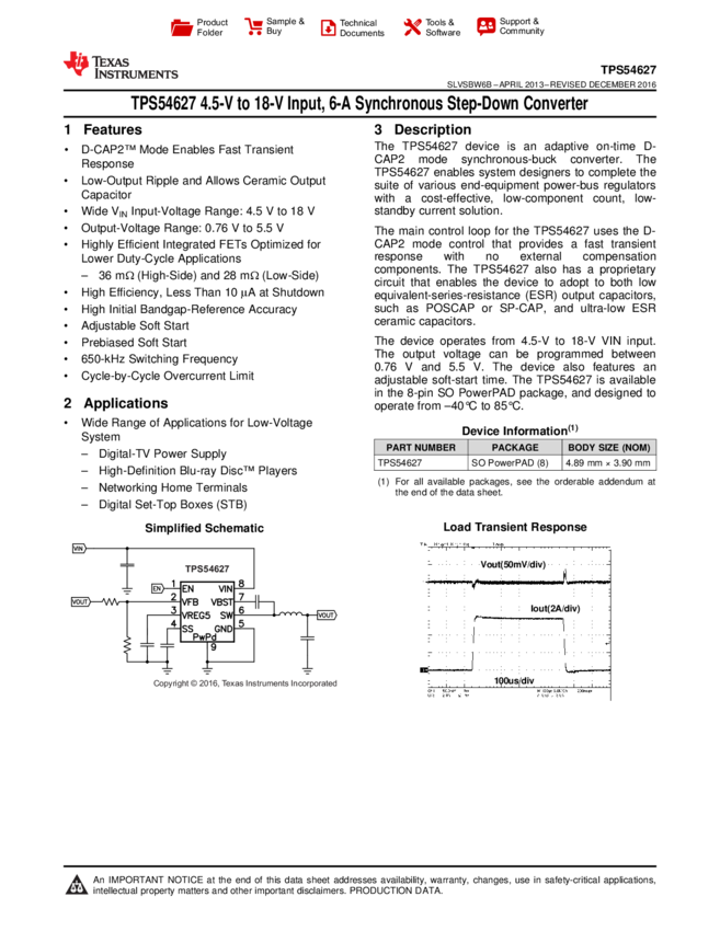 TPS54627DDA Conv DC-DC Single Step Down 4.5V to 18V 8-Pin PowerSO Tube
