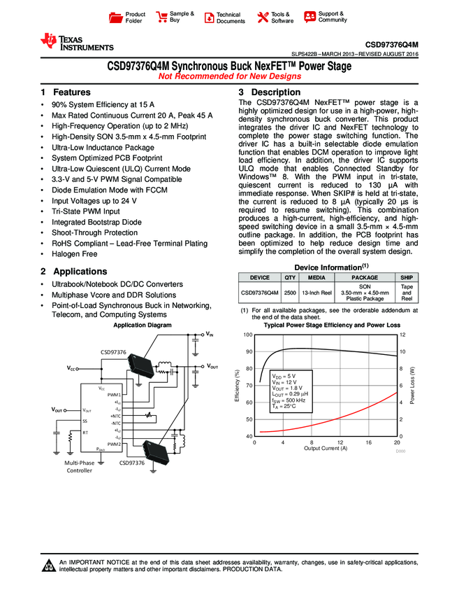 CSD97376Q4M Synchronous Buck NexFET Power Stage 8-Pin VSON T/R