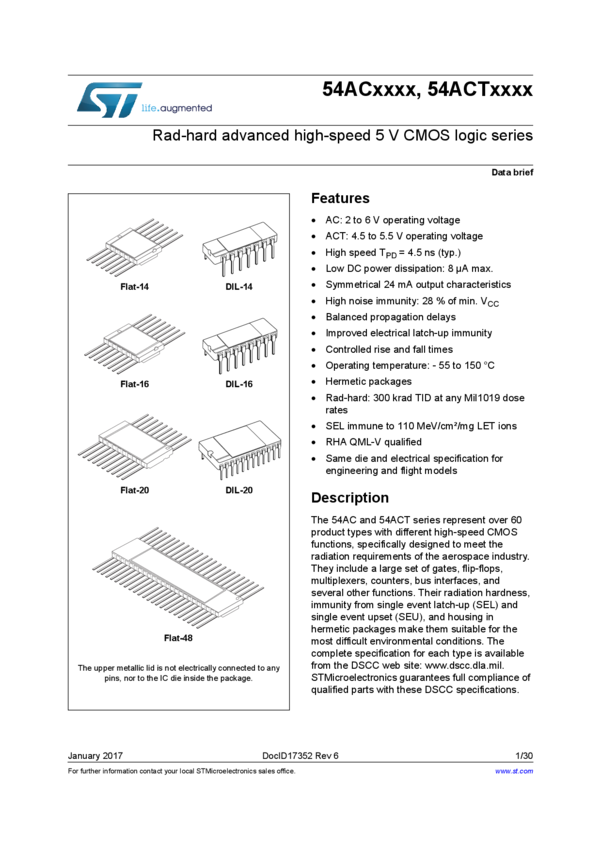 RHFAC74K1 Flip Flop D-Type Pos-Edge 1-Element 14-Pin Carrier T/R