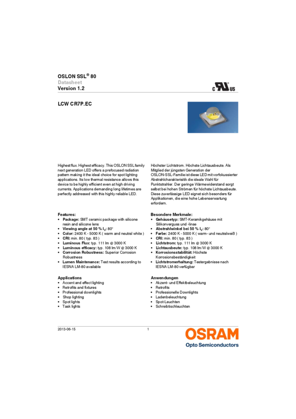 LCW CR7P.EC-KULQ-6M7N LED Uni-Color White 130lm 4000K Chip LED 3-Pin CSMD T/R