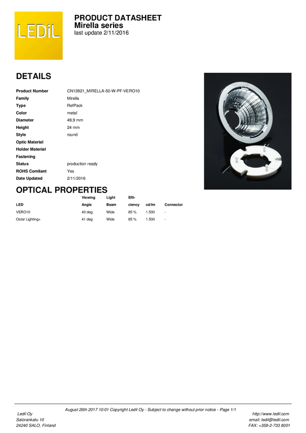 CN13921_MIRELLA-50-W-PF-VERO10 Round Reflector Pack For Ostar Lighting+, VERO10 LED