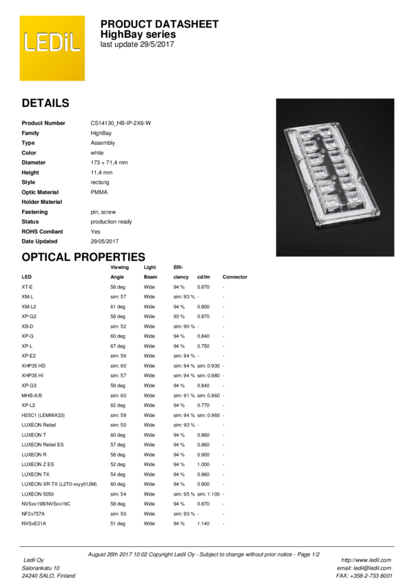 CS14130_HB-IP-2X6-W Rectangle Lens Assembly For Acrich MJT 4040, XM-L, XM-L2, Oslon Square PC,...