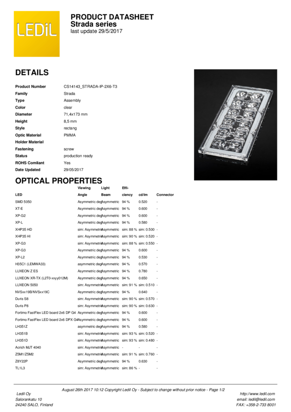 CS14143_STRADA-IP-2X6-T3 Rectangle Lens Assembly For Acrich MJT 4040, XT-E, LUXEON Z ES, XP-G2, H35C...