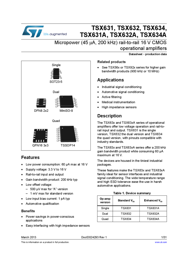 TSX632IYST OP Amp Dual GP R-R I/O 16V 8-Pin Mini-SO T/R