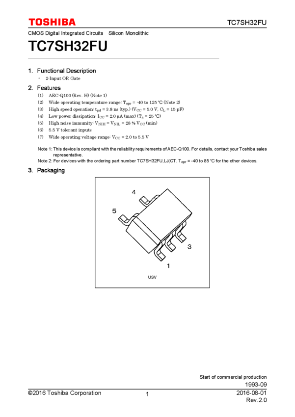 TC7SH32FU,LJ(CT OR Gate 1-Element 2-IN CMOS 5-Pin SSOP