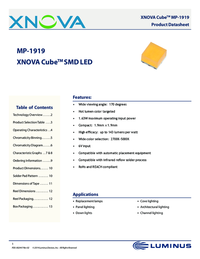 MP-1919-2101-27-80 LED Uni-Color 119lm 2700K Chip LED 2-Pin SMD T/R