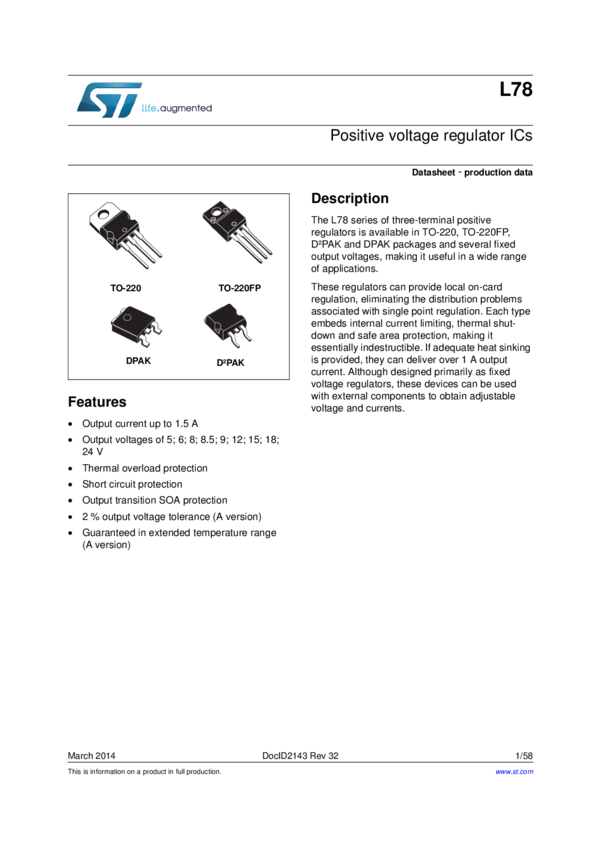 L7815ACD2T-TR, L7824CD2T-TR, L7815ABD2T-TR