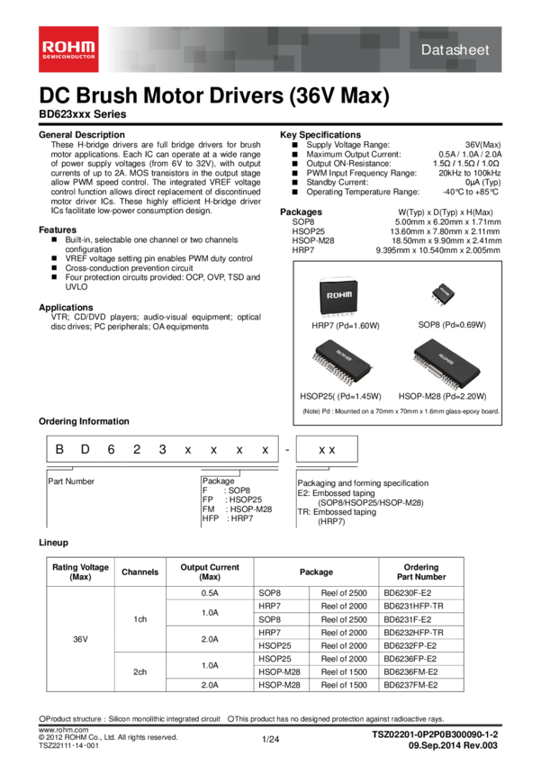 BD6237FM-BZE2 DC Brush Motor Driver 6 to 32V 8-Pin SOP Embossed T/R