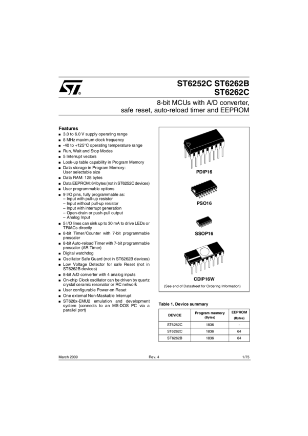 ST62P62CN6/MMMTR MCU 8-Bit ST6 CISC 1836byte OTP 3.3V/5V 16 SSOP T/R