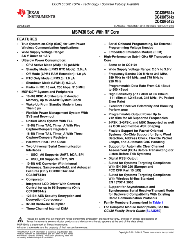 CC430F5147IRGZT MCU 16-Bit MSP430 RISC 32KB Flash 2.5V/3.3V 48-Pin VQFN EP T/R