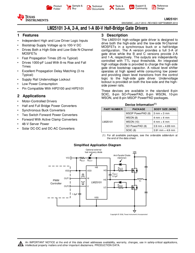 LM25101AMR/NOPB MOSFET DRVR 3A 2-OUT Hi/Lo Side Non-Inv 10-Pin SO PowerPAD Tube