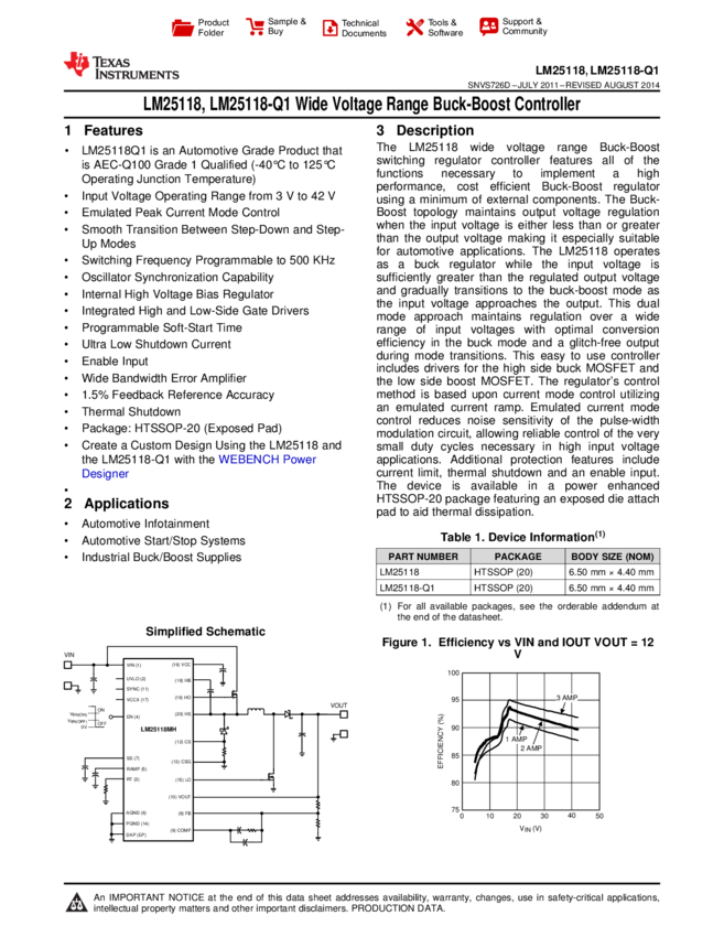 LM25118Q1MHX/NOPB DC DC Cntrlr Single Sync Buck 3V to 42V Input 20-Pin HTSSOP T/R
