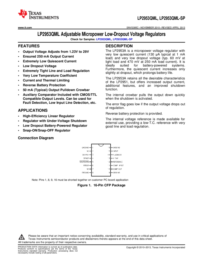 LP2953AMGW-QMLV LDO Regulator Pos 1.23V to 29V 0.25A 16-Pin CPACK Tray