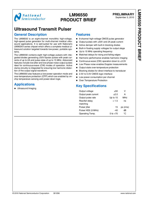LM96550SQ/NOPB Ultrasound Transmit Pulser 80-Pin WQFN T/R