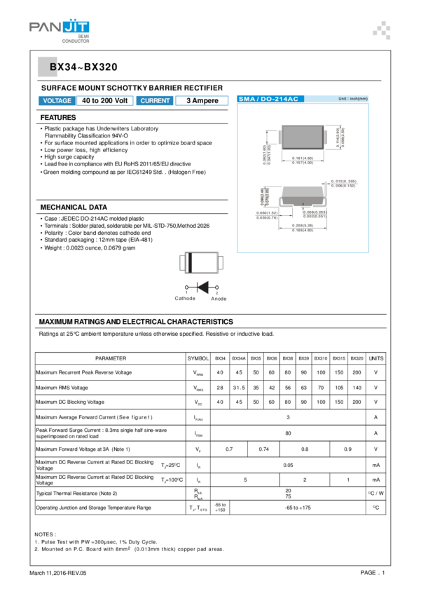 BX310_R1_00001 Diode Schottky 100V 3A 2-Pin DO-214AC Plastic T/R