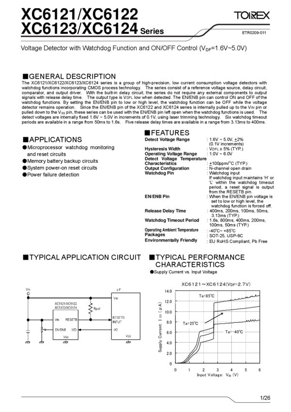 XC6124E627ER-G Volt Supervisor Detect 2.754V 6V 6-Pin USP-C T/R