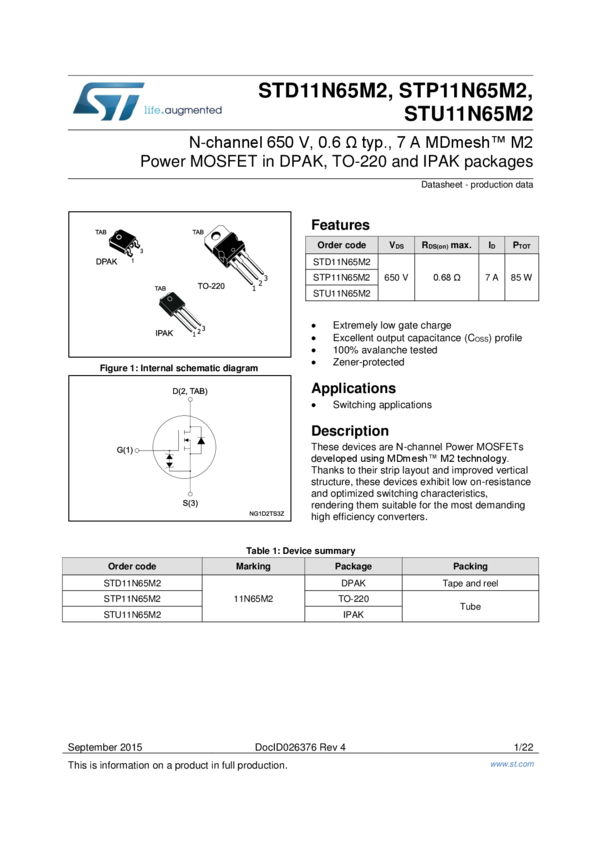 STP11N65M2 Trans MOSFET N-CH 650V 7A 3-Pin TO-220 Tube