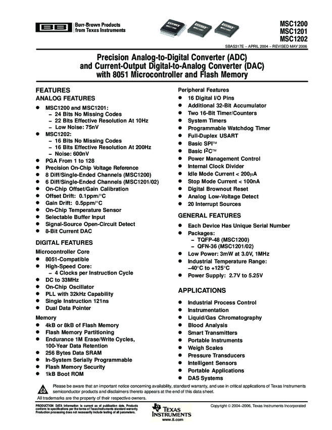 MSC1200Y2PFBT MCU 8-bit MSC1200 8051 CISC 4KB Flash 3.3V/5V 48-Pin TQFP T/R