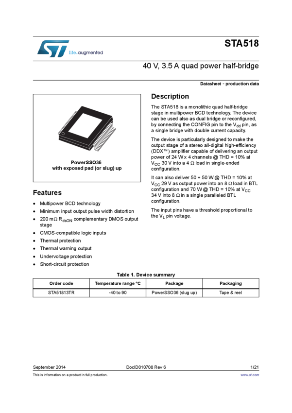 STA51813TR Quad Power Half Bridge 36-Pin PowerSO T/R