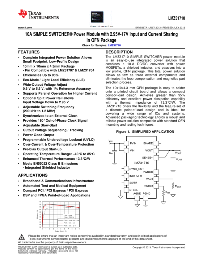LMZ31710RVQT Conv DC-DC Single Step Down 2.95V to 17V 42-Pin BQFN T/R