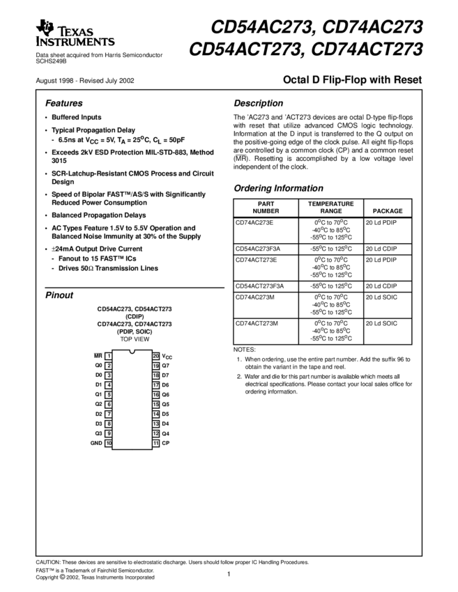 CD74AC273E, CD54AC273F3A, CD74ACT273E, CD54ACT273F3A