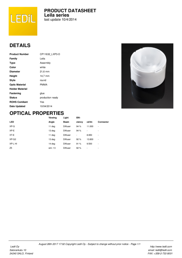 CP11632_LXP3-D ASSEMBLY ROUND 1 POS 21.6MM (D) 14.6MM(H